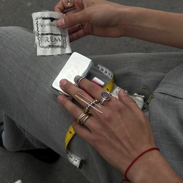 Ring made of magnetic pearls that keep needles attached. Ideal for sewing on the metro, walking down the street, or just chilling at home.